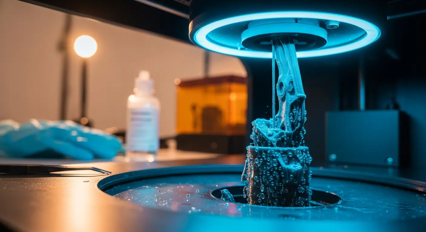 3. czyszczenie z resztek żywicy, najczęściej używa się do tego alkoholu izopropylowego (IPA) lub dedykowanych środków czyszczących zaprojektowanych specjalnie do żywic UV;